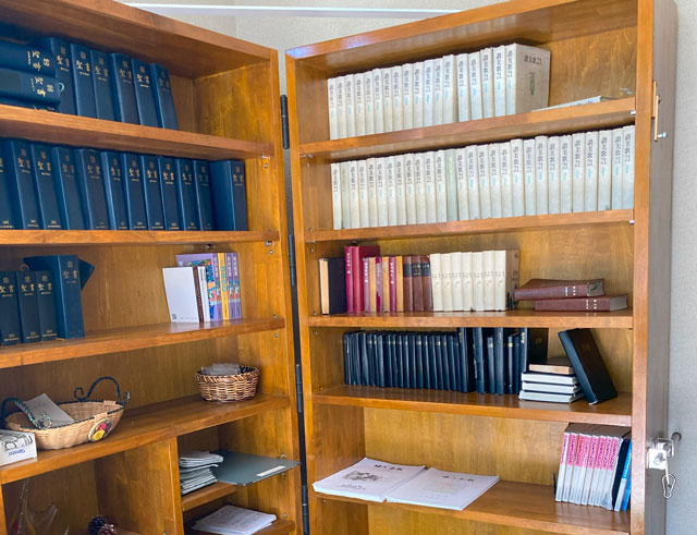 玄関を入ってすぐのところに、備え付けの聖書や讃美歌を入れた棚があります。