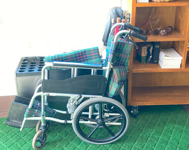 車椅子を常備していますので、ご入用でしたら遠慮なくお申し出ください。