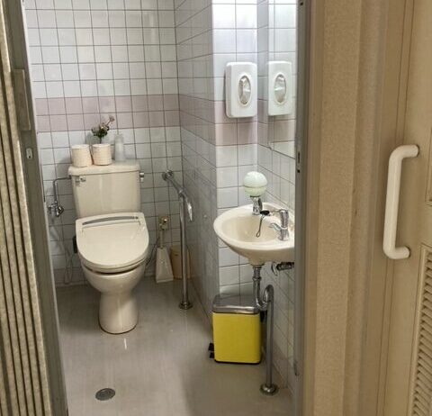 お身体の不自由な方にも使いやすい、手すり付きのトイレもあります。車椅子で中に入れます。